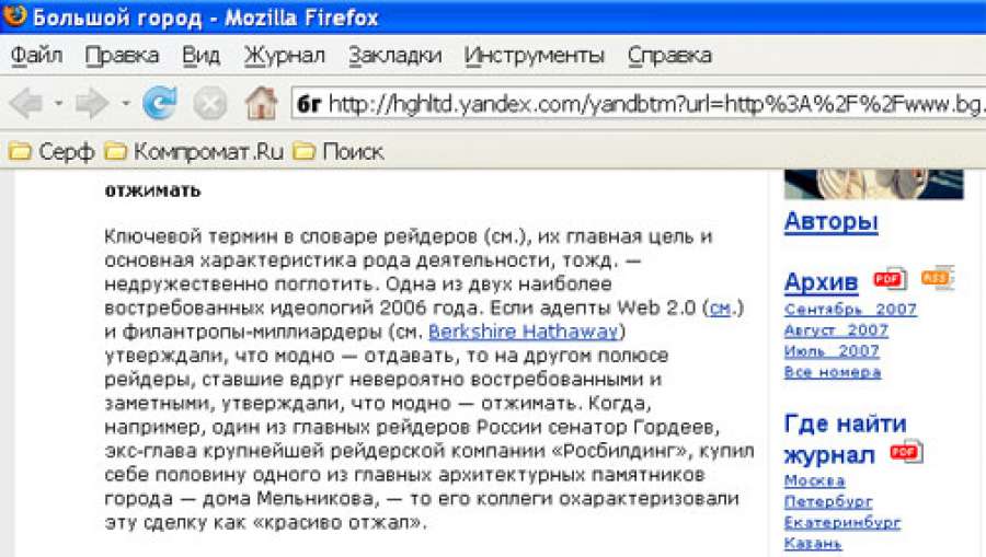 Сенатор Гордеев, экс-глава крупнейшей рейдерской компании Росбилдинг "отжал" журнал "Большой Город"