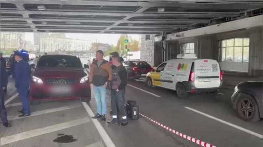 Красный внедорожник Mercedes внезапно остановился посреди оживленной московской улице в обед. Из автомобиля прогремел хлопок, и он внезапно остановился среди проезжей части на набережной Тараса Шевченко.