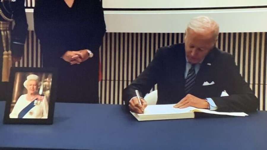 В день смерти монарха Байден посетил посольство Великобритании в Вашингтоне, чтобы оставить запись в книге соболезнований. Президента и первую леди США Джилл Байден встретили посол Великобритании Карен Пирс и ее супруг.