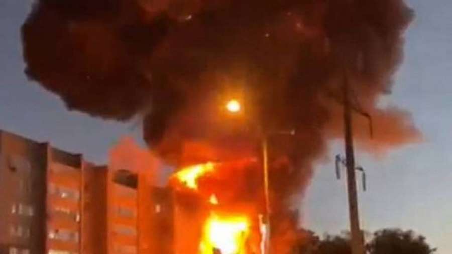 Воздушное судно упало во дворе рядом с жилым девятиэтажным домом. В результате здание загорелось. Огонь охватил сразу несколько этажей. Предварительно, пострадали десять человек.