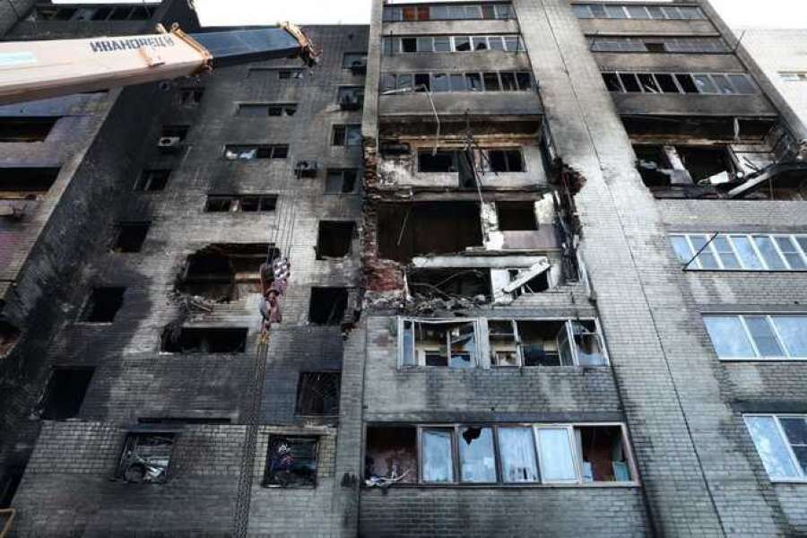 18 октября появилось видео со съемкой поврежденной многоэтажки с дрона. На кадрах видно обугленный фасад дома с выбитыми окнами и разрушенными балконами.