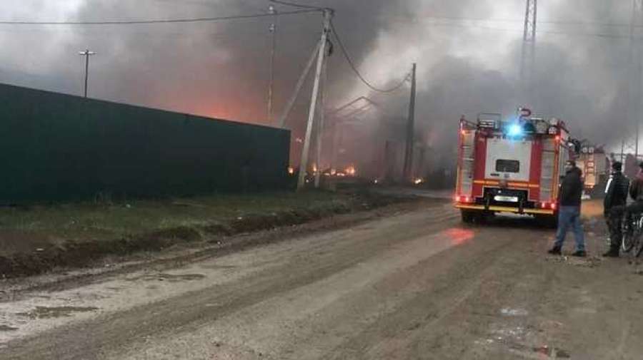 Огонь перекинулся на сервис грузовых авто — там слышатся взрывы и сгорели уже две машины. Площадь пожара составляет около 600 квадратных метров.