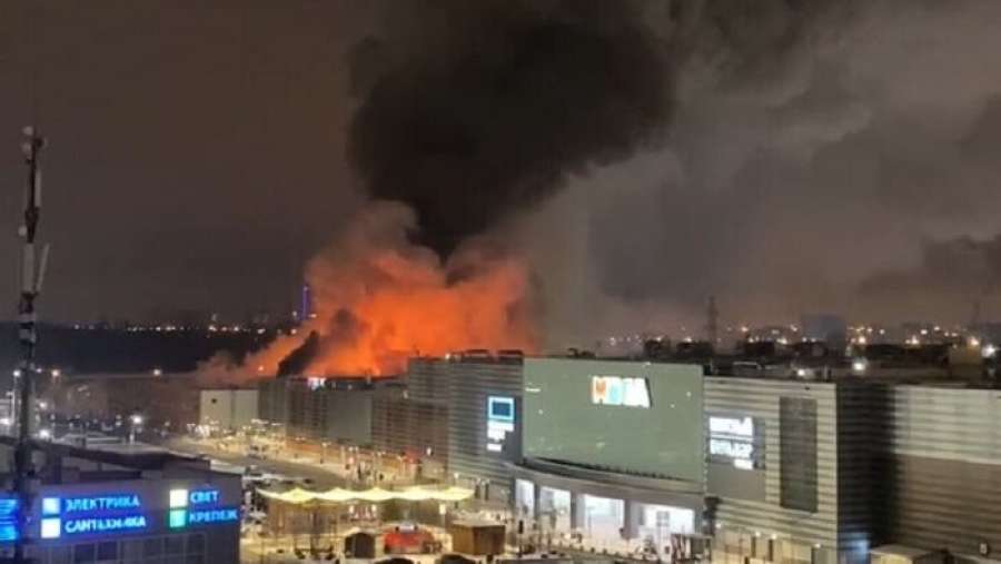 Очевидцы опубликовали видео с пожара в торговом центре под Москвой, на которых запечатлены взрывы. По данным федерального МЧС, площадь пожара составляет 7000 квадратных метров.