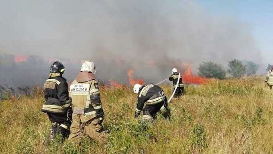 Трава горит уже несколько часов, местные жалуются, что пожарные долго не приезжали и люди сами пытались потушить возгорание.