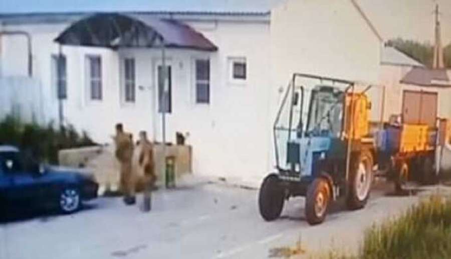 На видео с камер видеонаблюдения вооруженные люди заходят в здание свинокомплекса в Борисовском районе, выламывают дверь и что-то оттуда выносят.