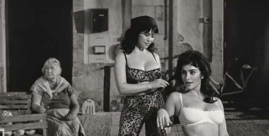 На одной фотографии из совместной работы сестры Кардашьян идут по итальянской улице в одинаковых комбинезонах с леопардовым принтом с классическими объемными прическами, привлекая восхищенные взгляды окружающих.