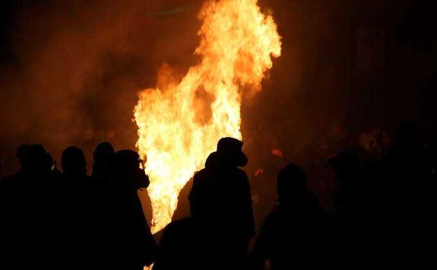 У входа в здание парламента Грузии протестующие также сожгли чучело основателя правящей партии Бидзины Иванишвили.