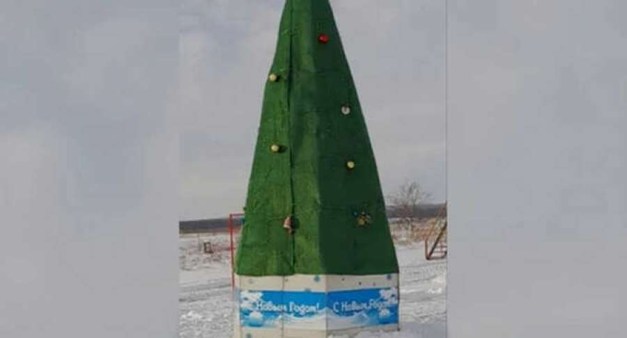 Жители Оренбургской области сообщили, что на хуторе Усатовский в посёлке Красный Коммунар вместо новогодней елки была установлена коническая конструкция, завернутая в зеленое искусственное покрытие и украшенная несколькими новогодними шарами.