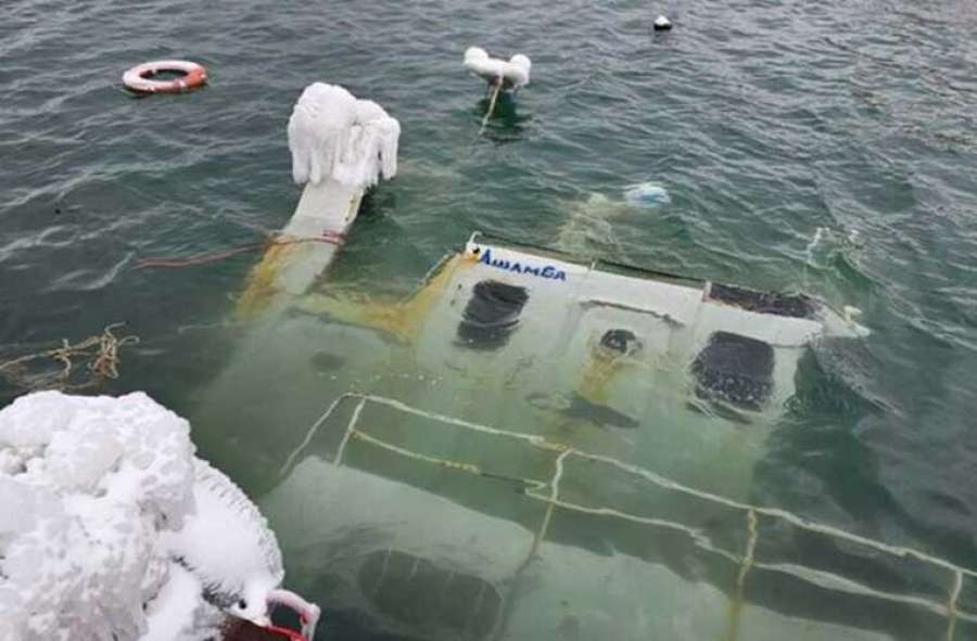 В порту Новороссийска в результате обледенения и потери устойчивости затонуло научно-экспедиционное судно (НИС) «Ашамба».